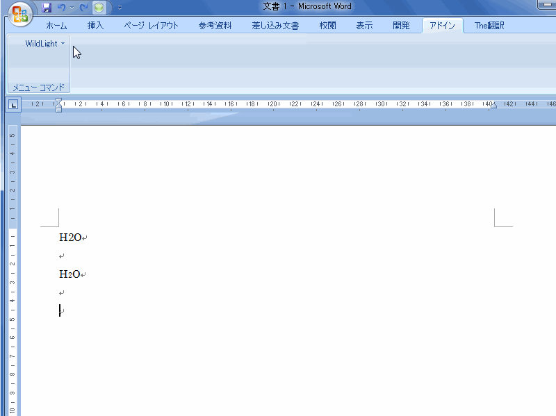 2を下付指定し忘れた H2O に蛍光ペンが付くのが分かると思います。