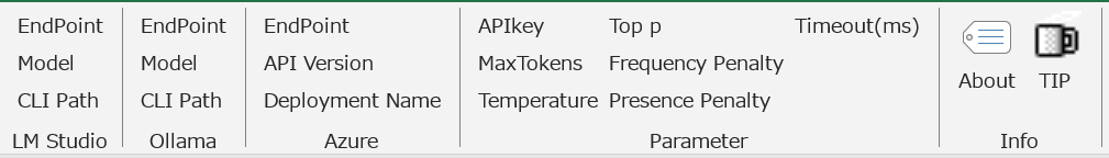 使用しているLLM (LM Studio/Ollama)のEndPoint, Model, CLI Pathを設定してください。EndPoint, CLI Pathには、初期値が設定されています。