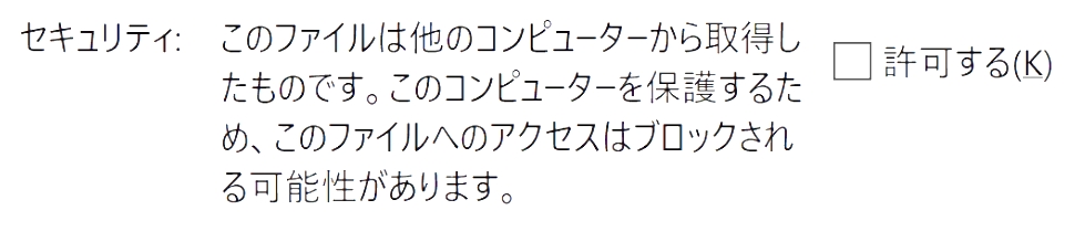 - 以下のセキュリティ表示がある場合は、「許可する」にチェックを入れる。